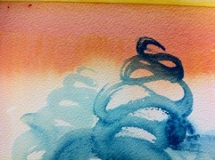 The burgundy cloud creeps down the paper silently until dry ridges gather pools